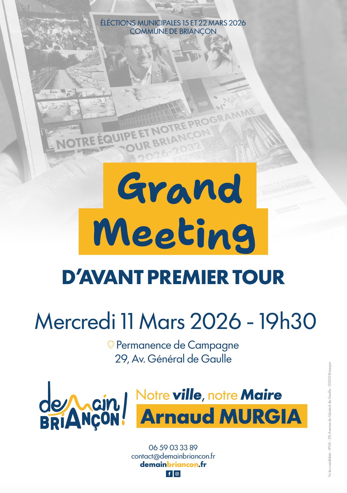 Mercredi 11 mars à 19h30. Dernier Grand Meeting d'avant Premier Tour. 2,avenue du Général de Gaulle. Briançon.