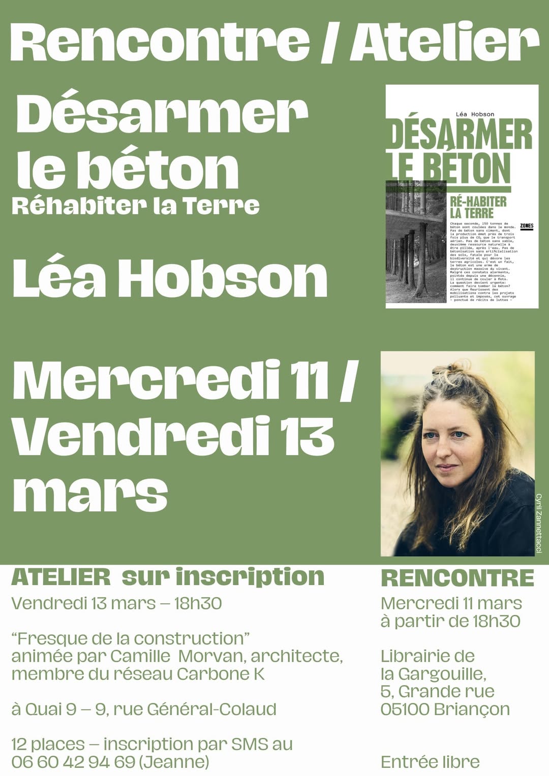 Vendredi 13 mars à 18h30. Rencontre autour du livre "Désarmer le béton / Réhabiter la Terre" .Librairie de la Gargouille. 5, grande rue. Briançon.